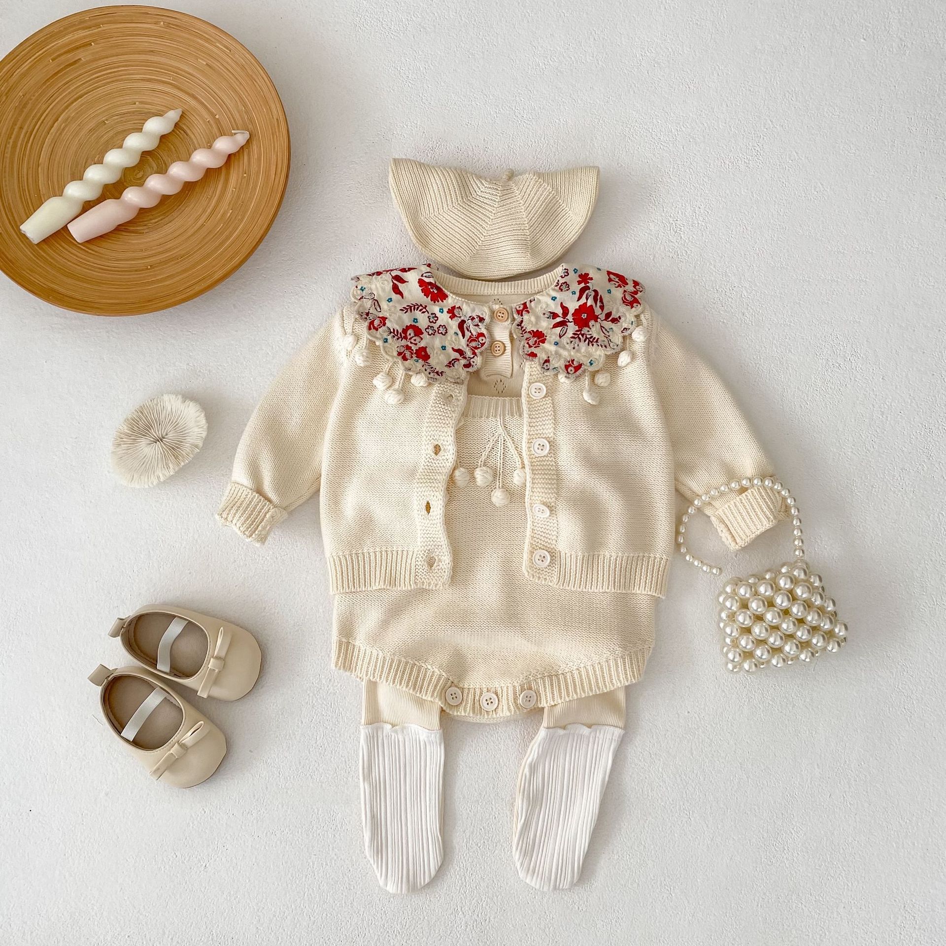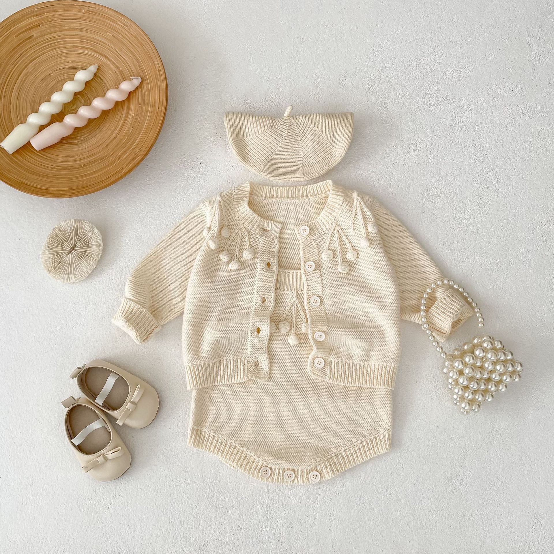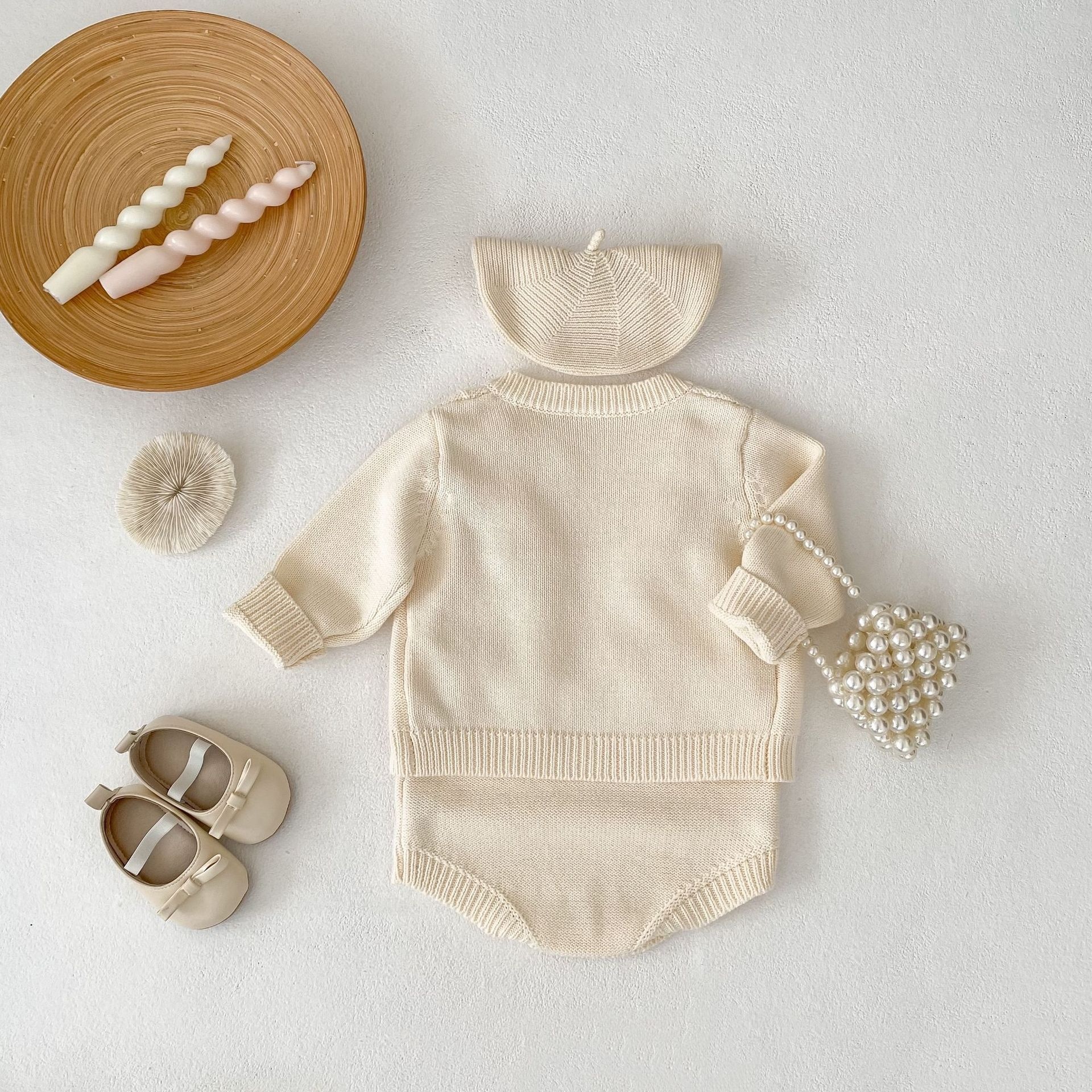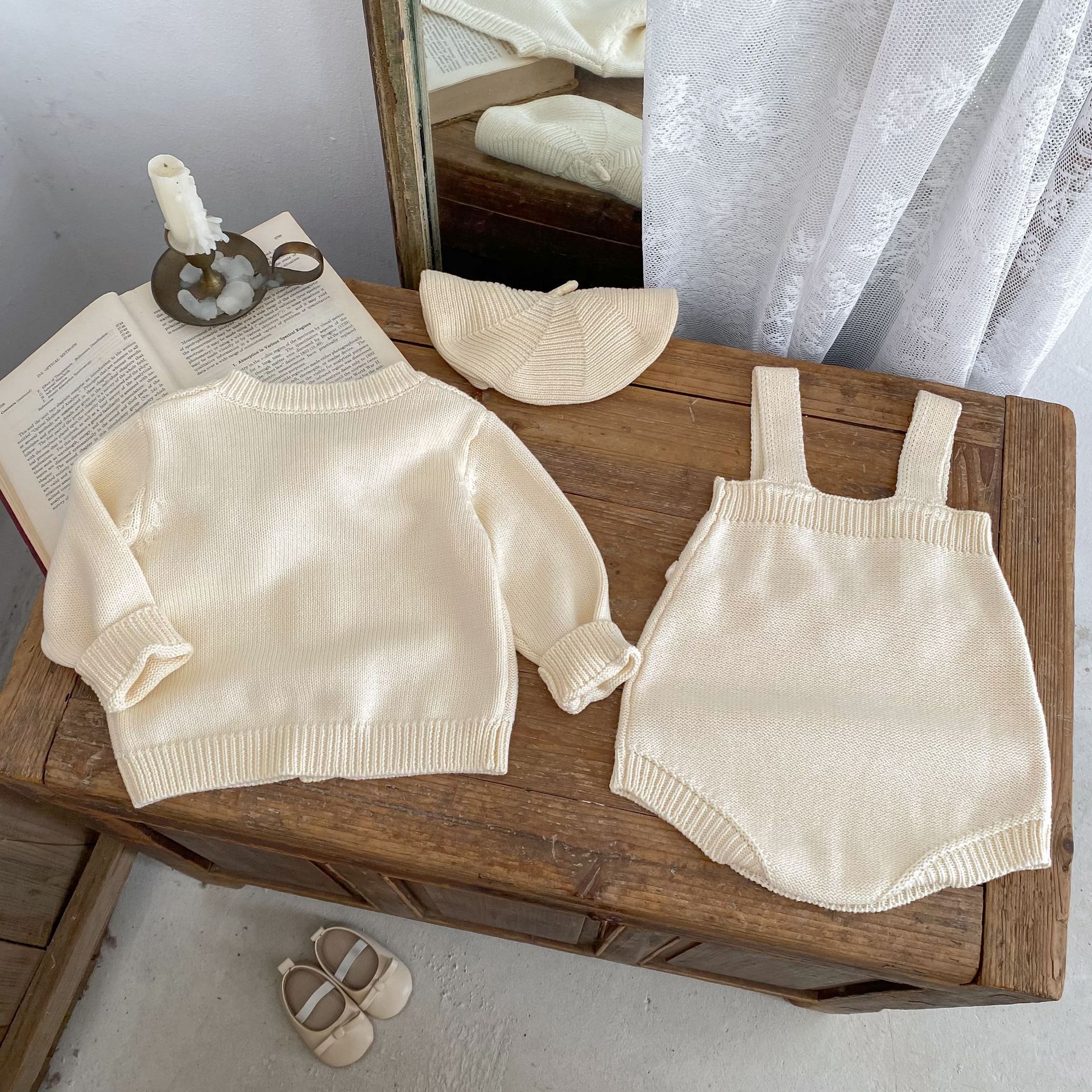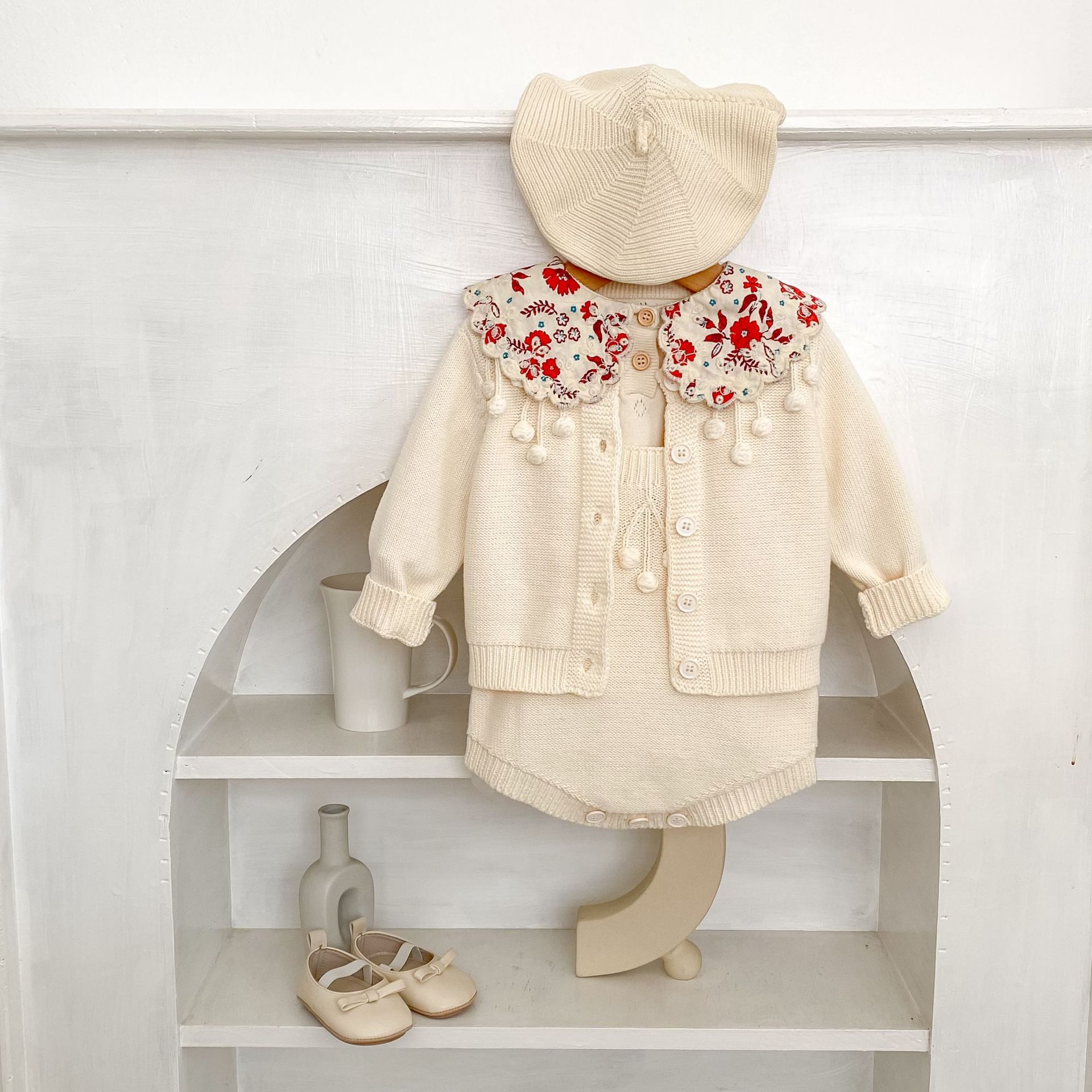 Color: coat apricot White, jumpsuit apricot White