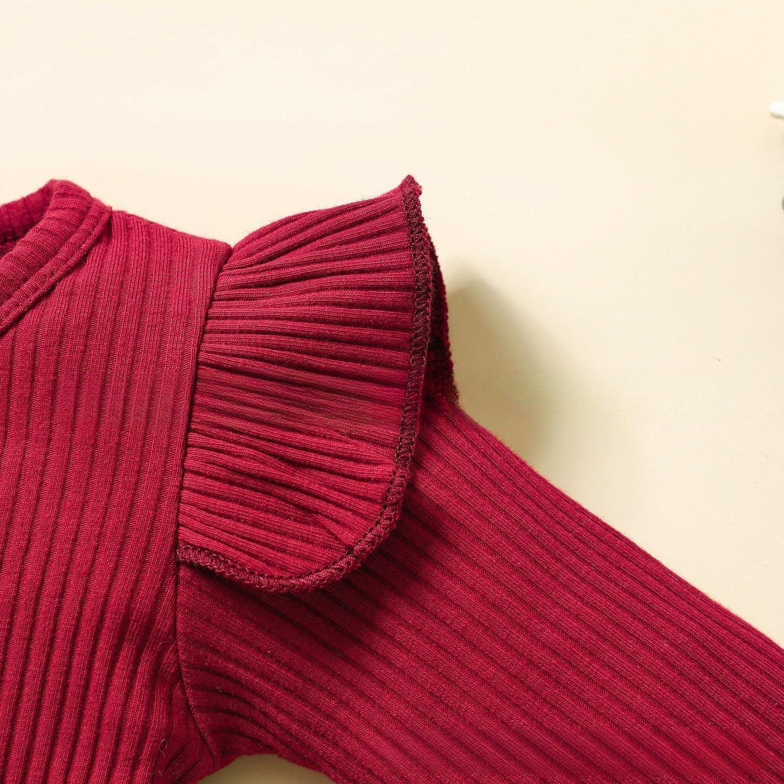 Girls' Solid Color Flounced Sleeve Romper Two-piece Cotton Clothing