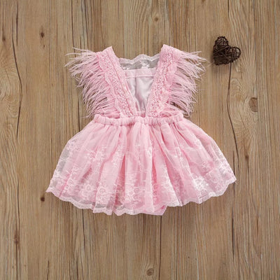 Hot Sale Children's Clothing Feather Lace Skirt Girls Rompers
