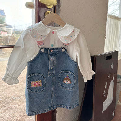 Girls' Cartoon Denim Suspender Skirt Dress Trendy Spring And Autumn Clothing