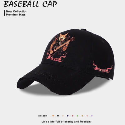 Retro Washed Baseball Cap Dachshund Printed Peaked Cap