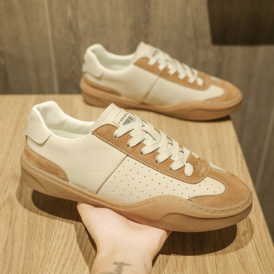 Stitching Contrast Color Genuine Leather Platform Flat Casual Board Shoes