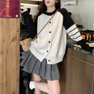 Idle Style High-grade Contrast Color Striped Sweater Coat