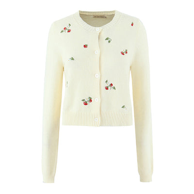 Simple Sweet Cherry Embroidered Knitted Cardigan