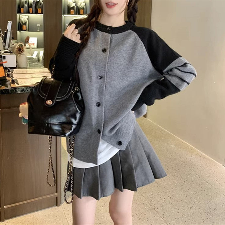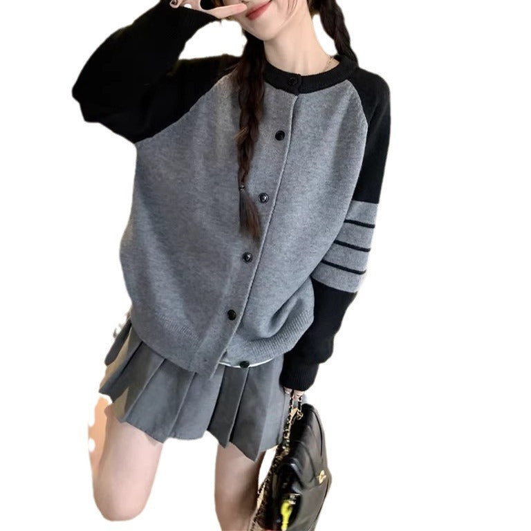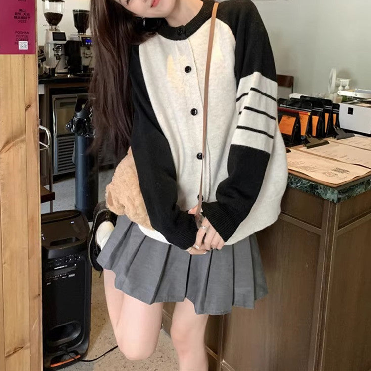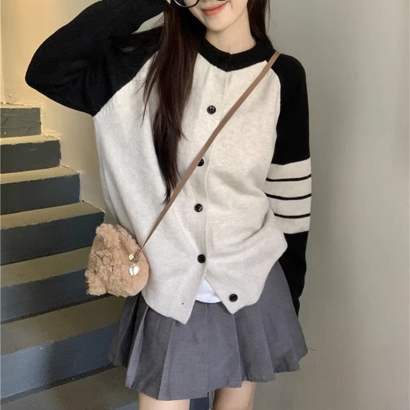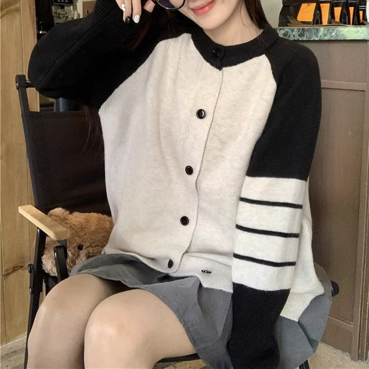 Idle Style High-grade Contrast Color Striped Sweater Coat