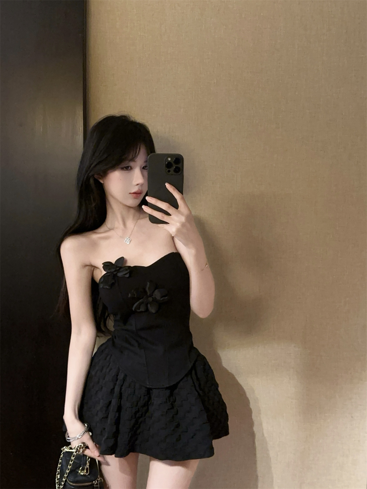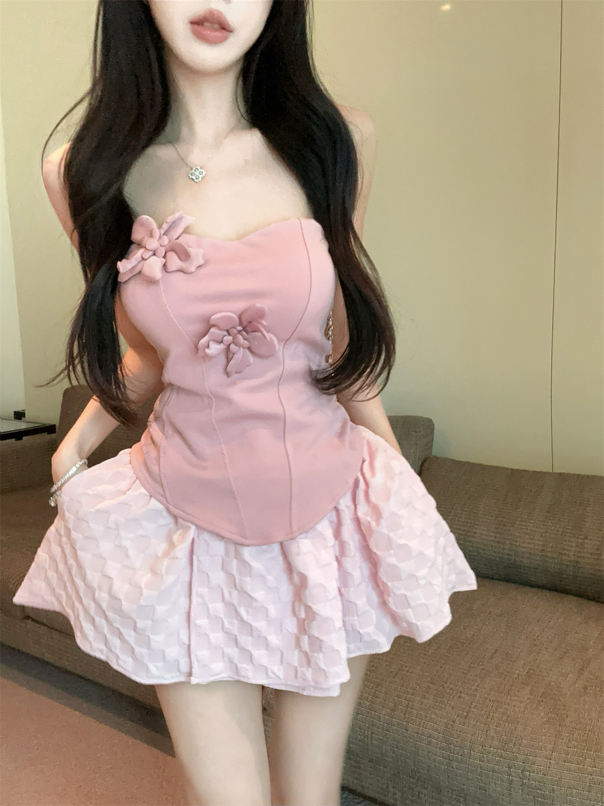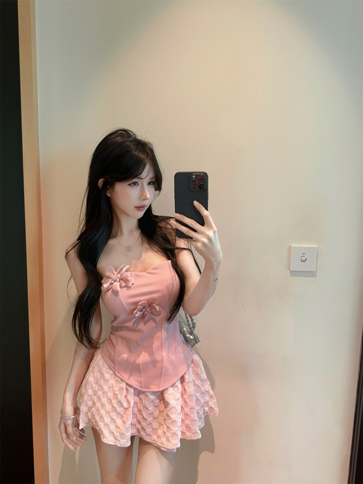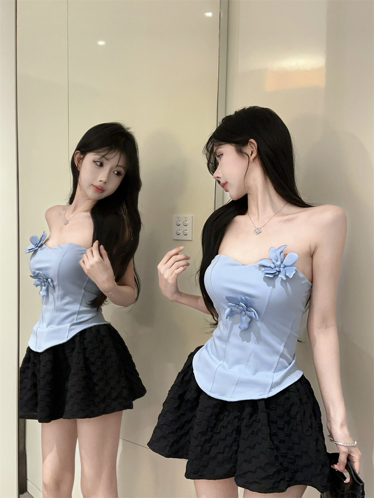Color: pink top, blue top, black top, pink skirt, black skirt