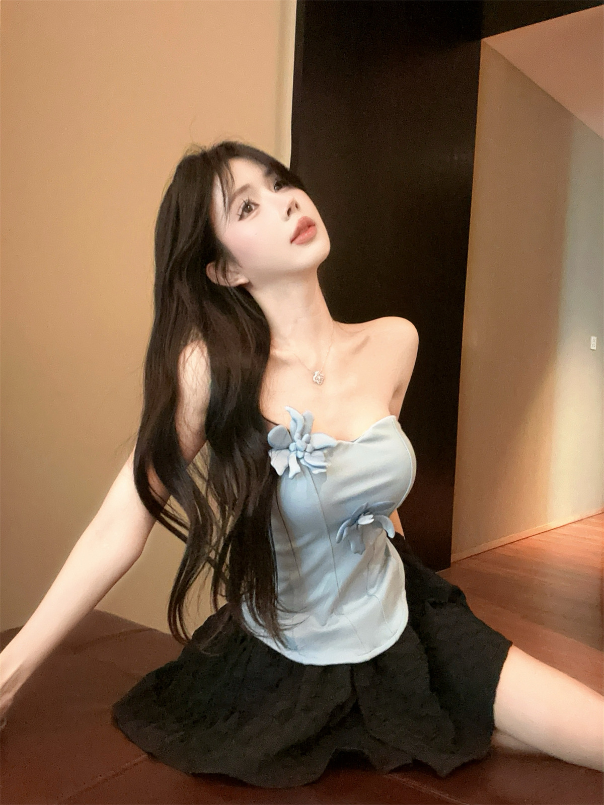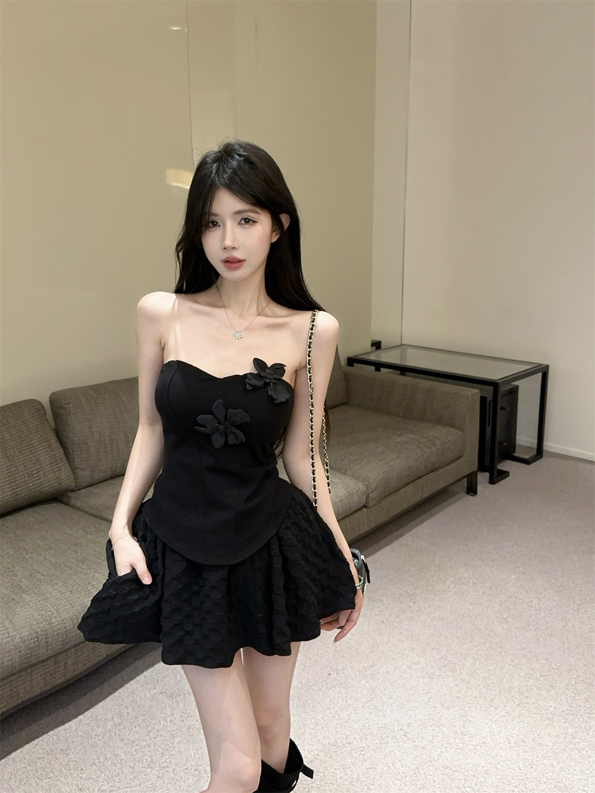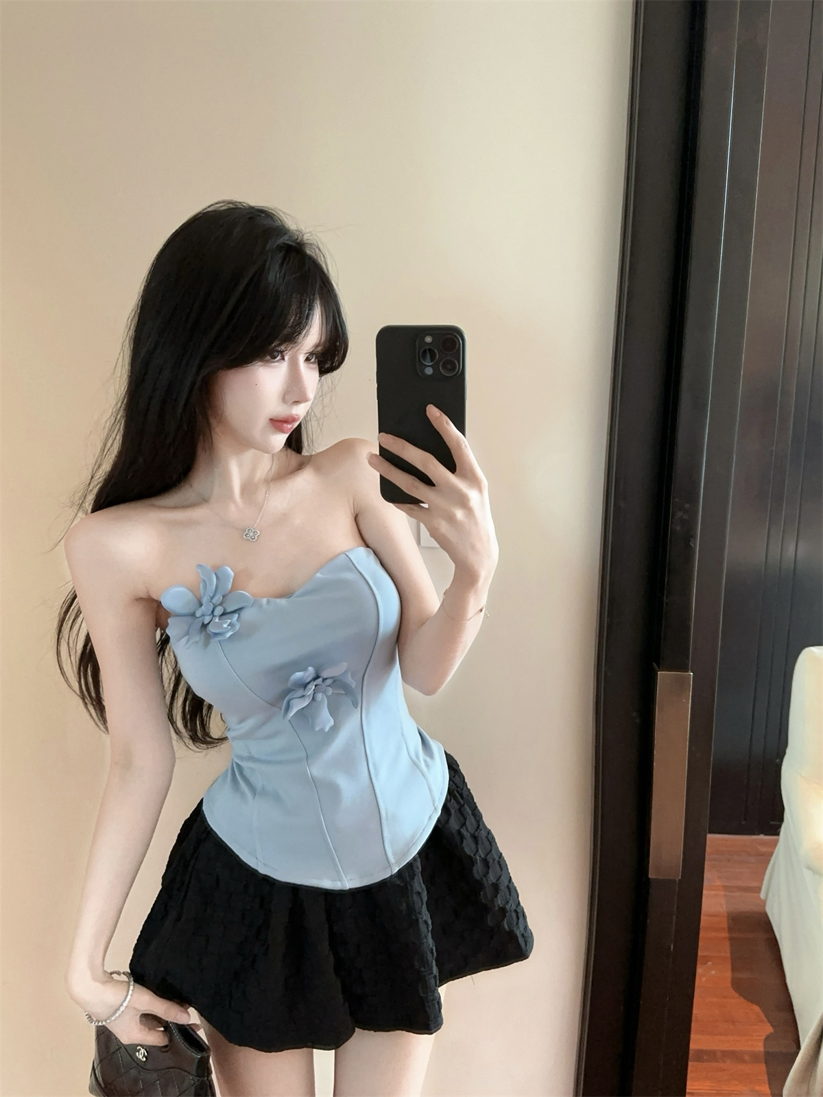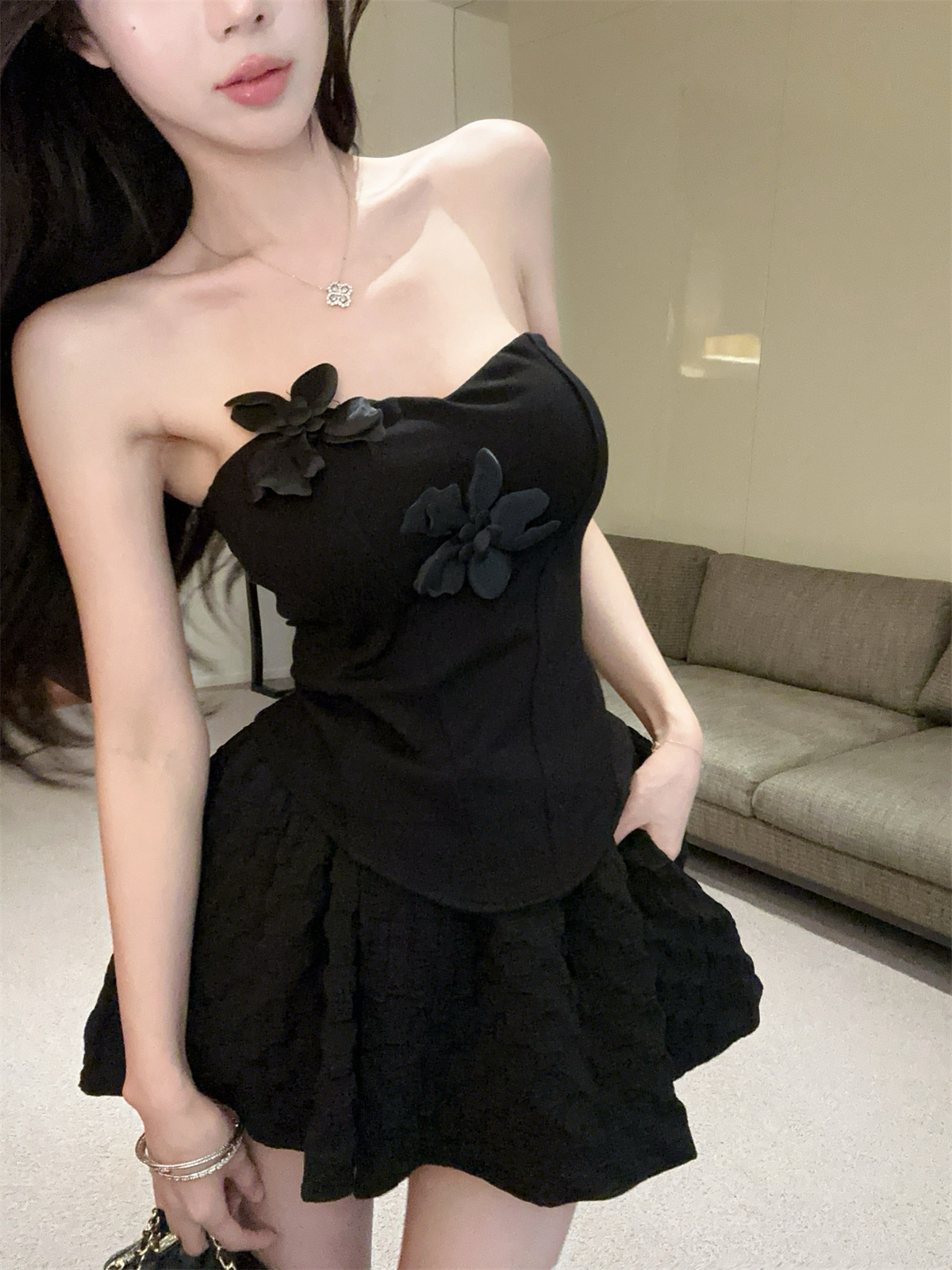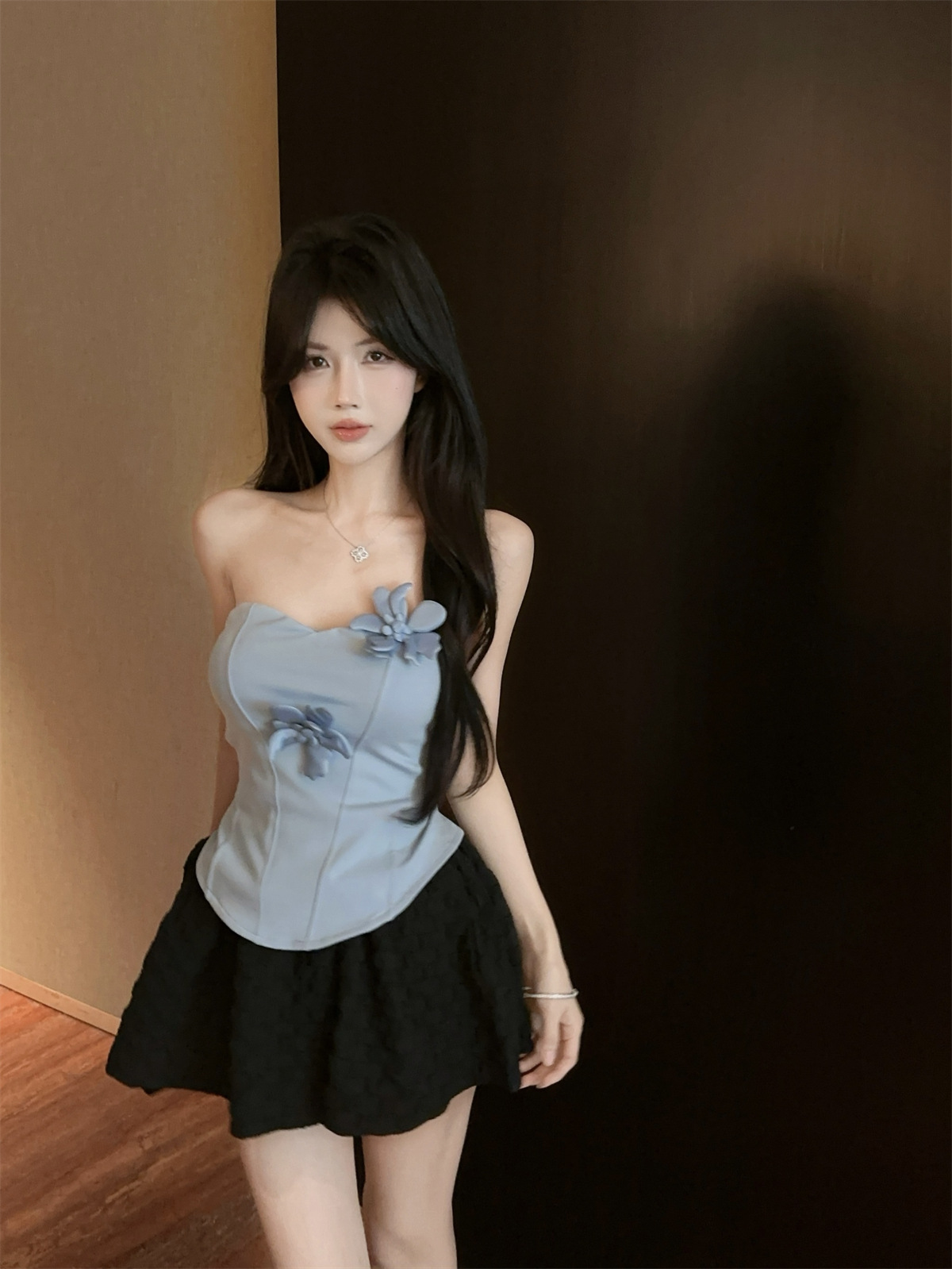 Color: pink top, blue top, black top, pink skirt, black skirt