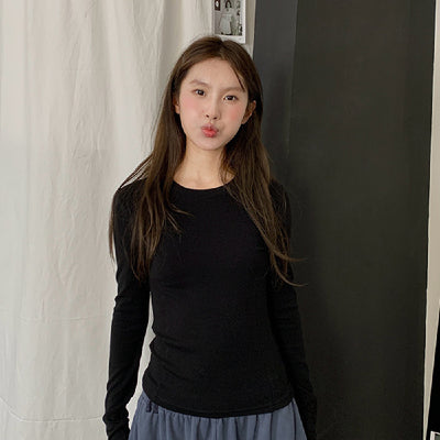 Round Neck Shoulder Wool Base Shirt Women