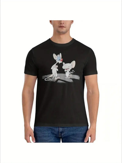 Print T-Shirt Men Pinky And The Brain Novelty Tee Shirt Crew Neck Short Sleeve T Shirts Printed Clothes