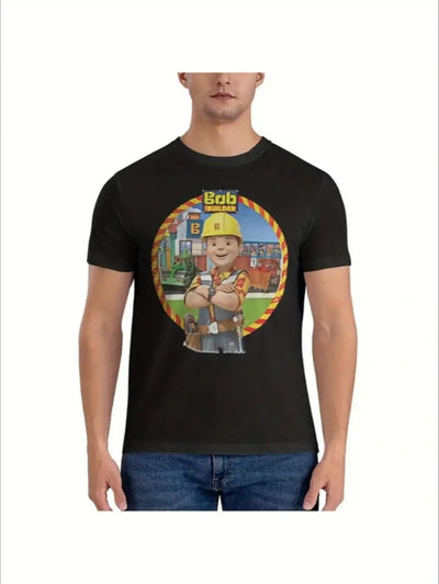 Build Men T Shirts B-Bob The Builder Engineering Cartoon Novelty Tee Shirt Short Sleeve O Neck T-Shirt