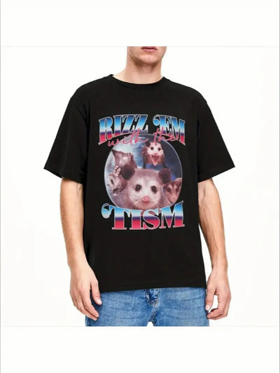 Funny Funny Rizz Em With The Tism Opossum T-Shirts Men Women's Round Collar Short Sleeve TeeS XL-4XL Clothes