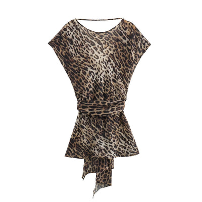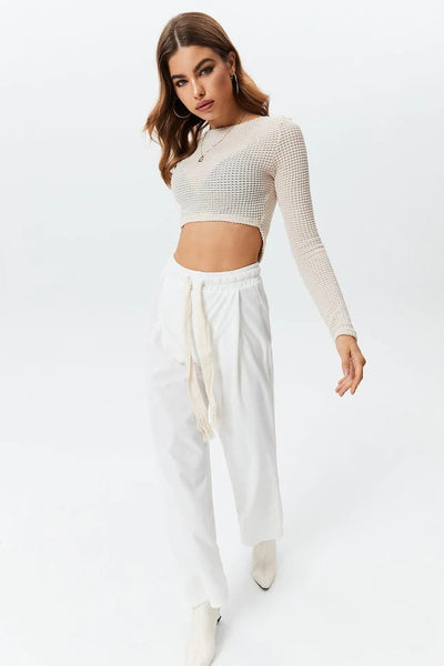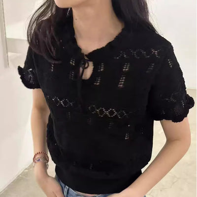 Hollow Stringy Selvedge Lace-up Knitted Top Women's T-shirt
