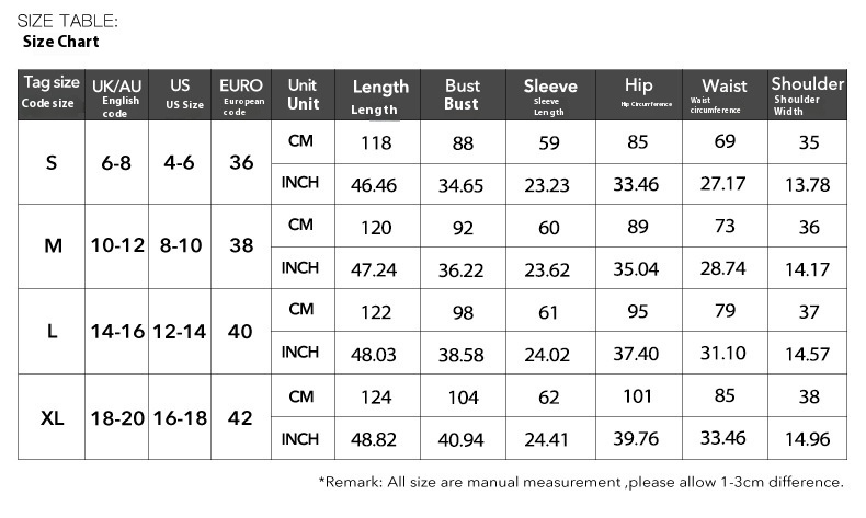 1. Asian sizes are 1 to 2 sizes smaller than European and American people. Choose the larger size if your size between two sizes. Please allow 2-3cm differences due to manual measurement. 2. Please check the size chart carefully before you buy the item, if you don't know how to choose size, please contact our customer service. 3.As you know, the different computers display colors differently, the color of the actual item may vary slightly from the following images.