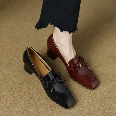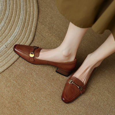 Spring And Autumn New Retro Square Toe Leather Shoes For Women
